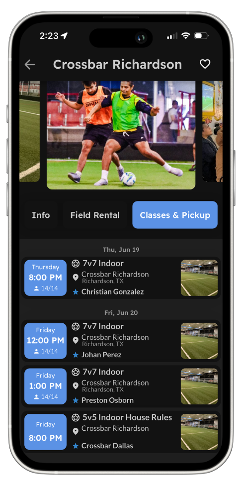Easily find local pickup soccer games and book fields near you — all in one app. No stress, just soccer whenever you’re ready to play.